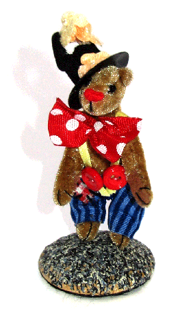 | Pippino Der Clown-Bär ist ca. 6,5cm groß. Sein Fell ist aus Minimohair und er trägt mit aufwendig genähte Kleidung. 42,-€ |