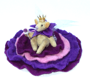 | Elfenkönigin Die Sitzhöhe ist ca. 4cm. Der Elfenstab hat eine Svarowski Perle und die Blume ist gefilz. 45,-€ |